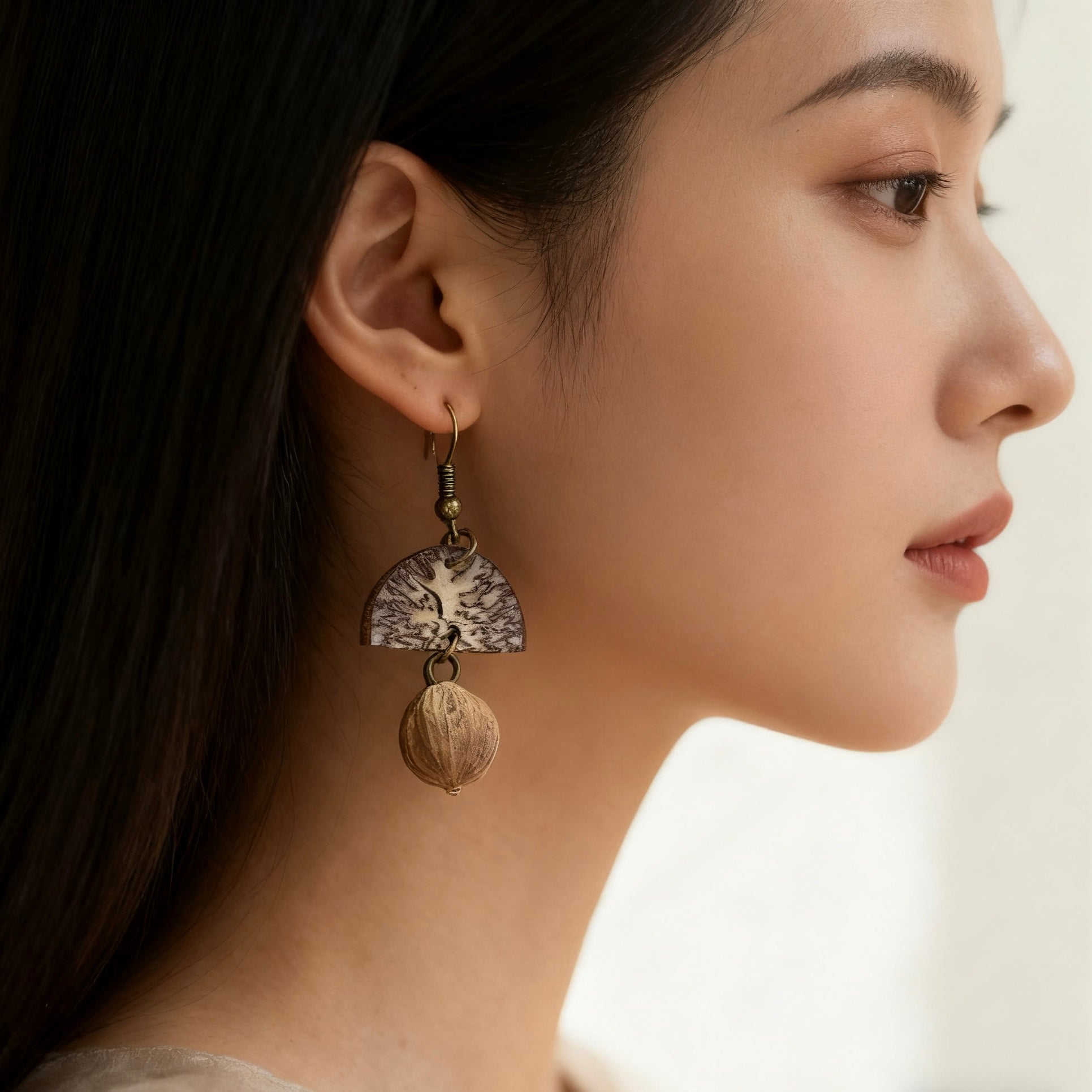Ideal for casual outings, nature-inspired gatherings, or bohemian-style ensembles, these earrings add a touch of poetic rusticity to minimalist outfits. They speak to those who value authenticity, subtlety, and a deep connection to the natural world.